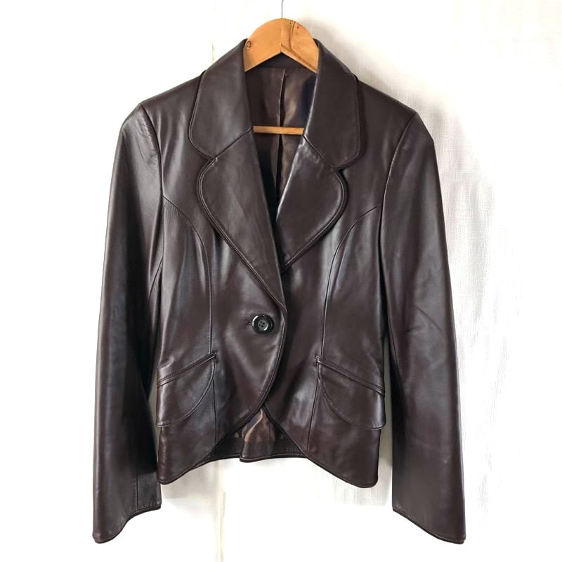 ロイスクレヨン Lois CRAYON ジャケット 羊革 裏地付き シングルボタン サイドポケット ブラウン系 Mサイズ 973215