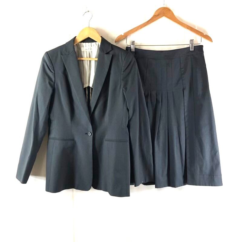 ボードビル VAUDEVILLE セットアップ ジャケット スカート プリーツスーツ 綿 麻 フェイクポケット 肩パッド 日本製 ダークグレー系 40サイズ 845169 | Ethical Store