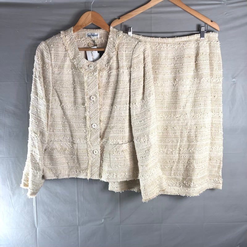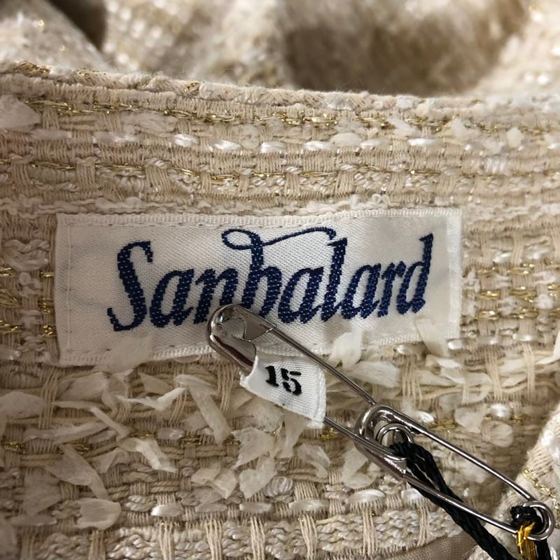 サンバラール Sanbalard セットアップ ジャケット スカート スーツ ツイード デザインボタン 綿 肩パッド 裏地付き 日本製 タグ付き ベージュ 15サイズ 977640 | Ethical Store
