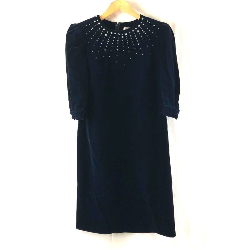 レジァンス REGENCE ワンピース タグ付き ラインストーン ビジューボタン ベルベット オケージョン インナー付き ネイビー 38サイズ 978392