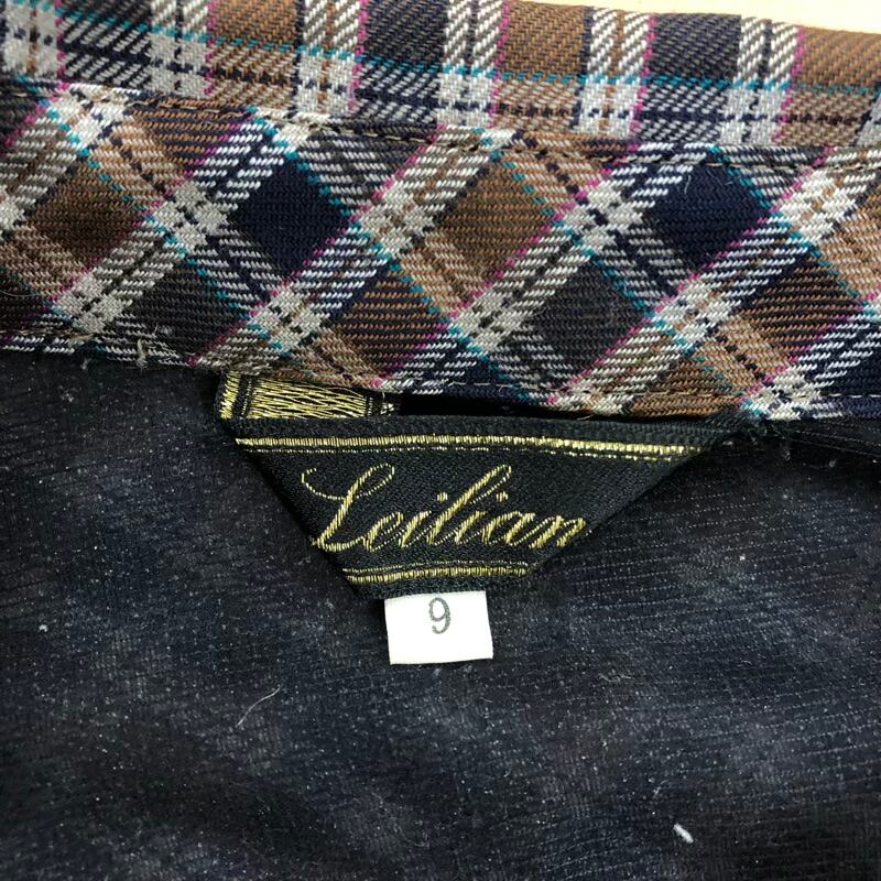 レリアン leilian シャツ 長袖 チェック柄 ポケット 肩パッド ネイビー ブラウン系 9サイズ 978368