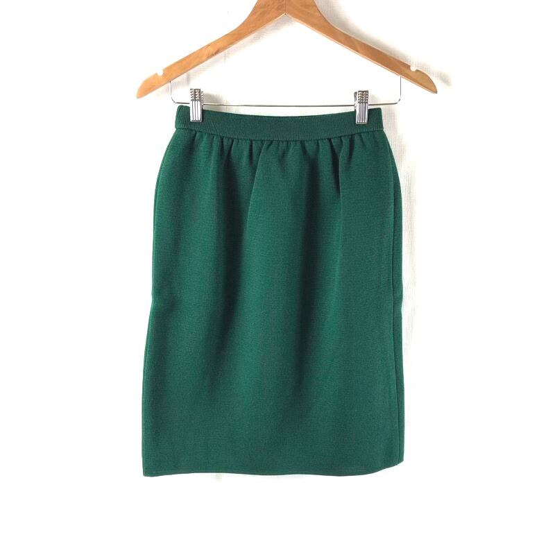 イヴサンローラン Yves Saint Laurent スカート ニット 無地 ウエストゴム 裏地付き 緑 9号サイズ 978243