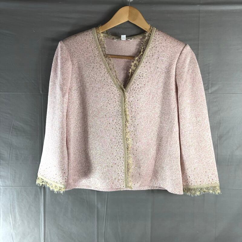 セントジョン ST.JOHN セットアップ ジャケット スカート スーツ レース ラインストーン ラメ 肩パッド ピンク系 6サイズ 978217