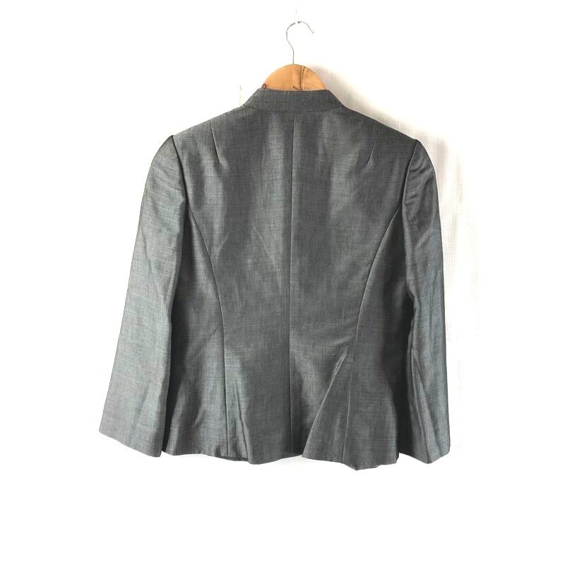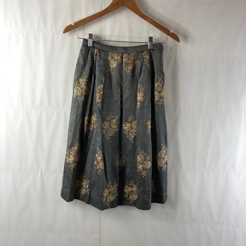ジュンアシダ jun ashida セットアップ ジャケット プリーツスカート スーツ 花柄 刺繍 肩パッド 裏地付き 日本製 グレー 9サイズ 976552