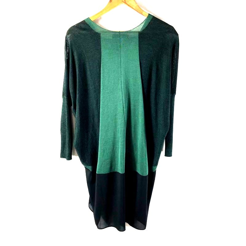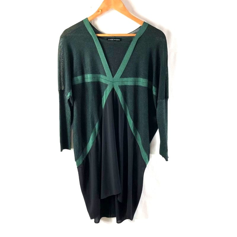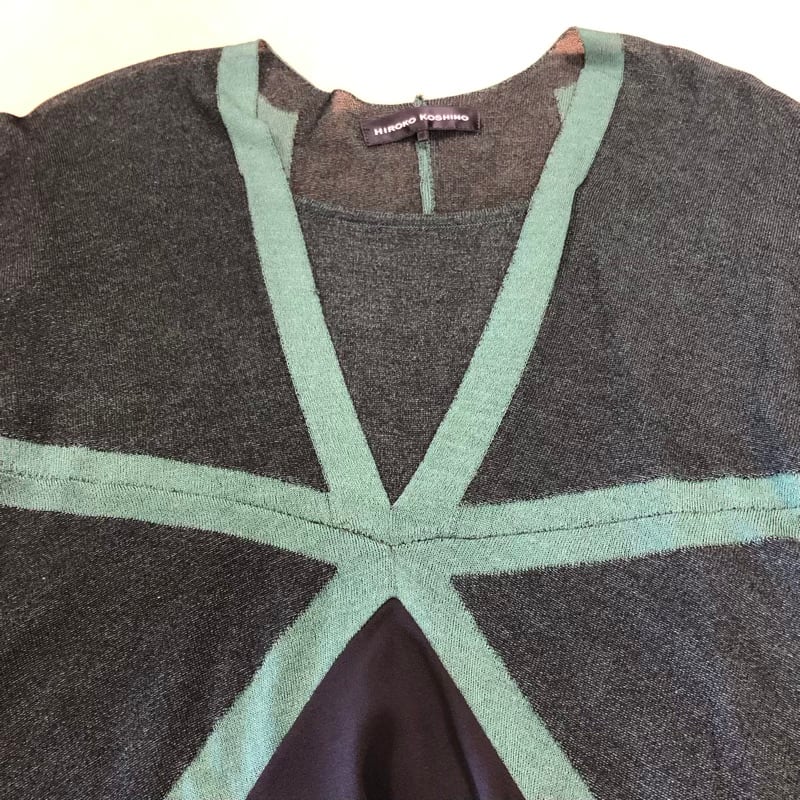 ヒロココシノ HIROKO KOSHINO カットソー 薄手 長袖 日本製 黒 緑 38サイズ 968476