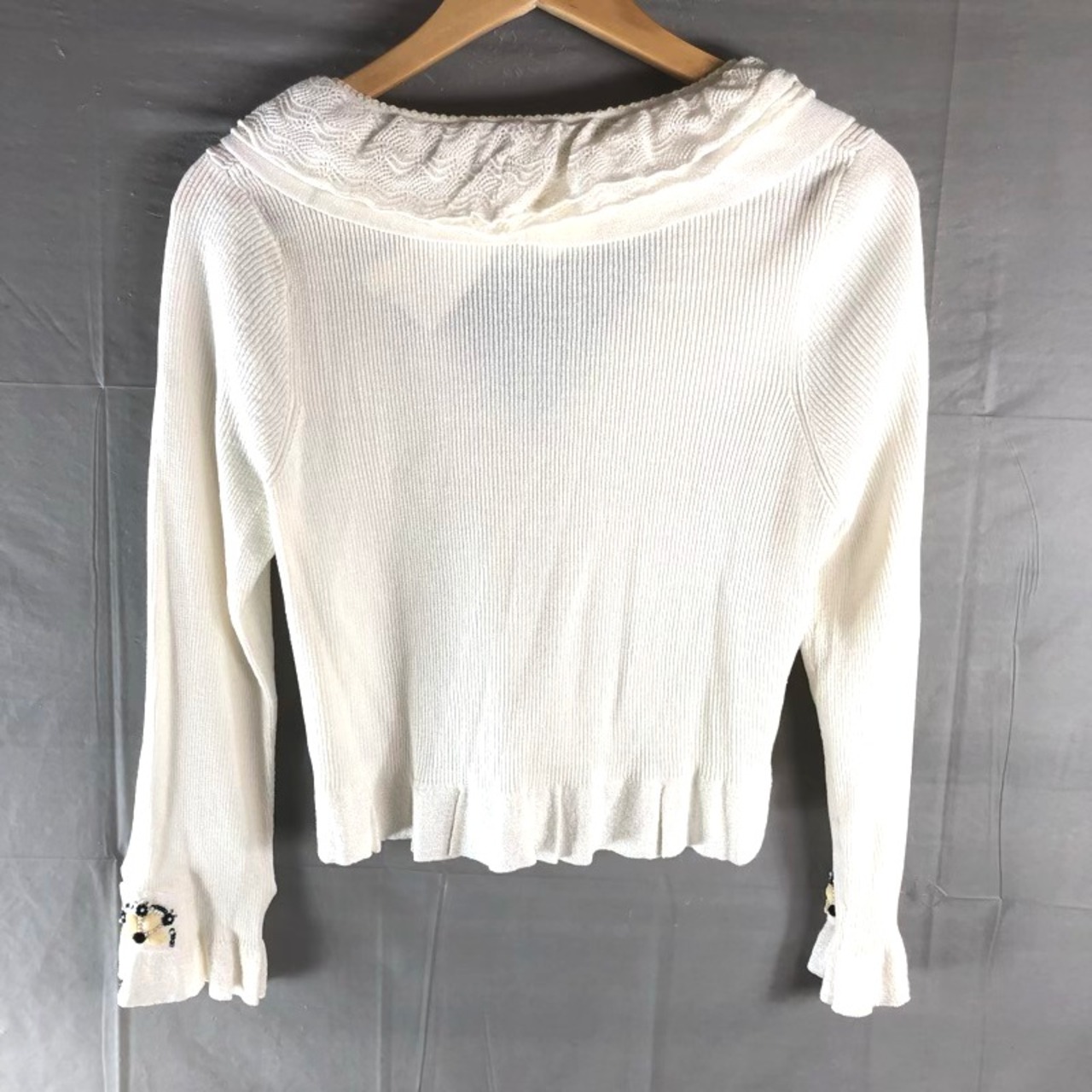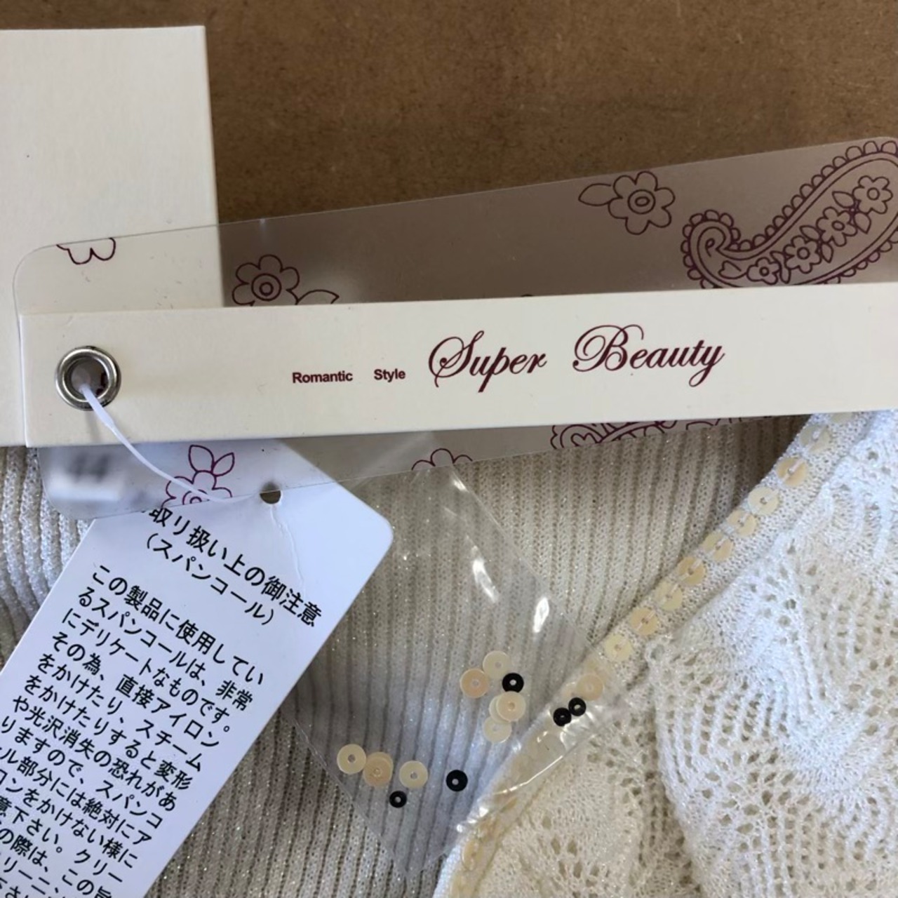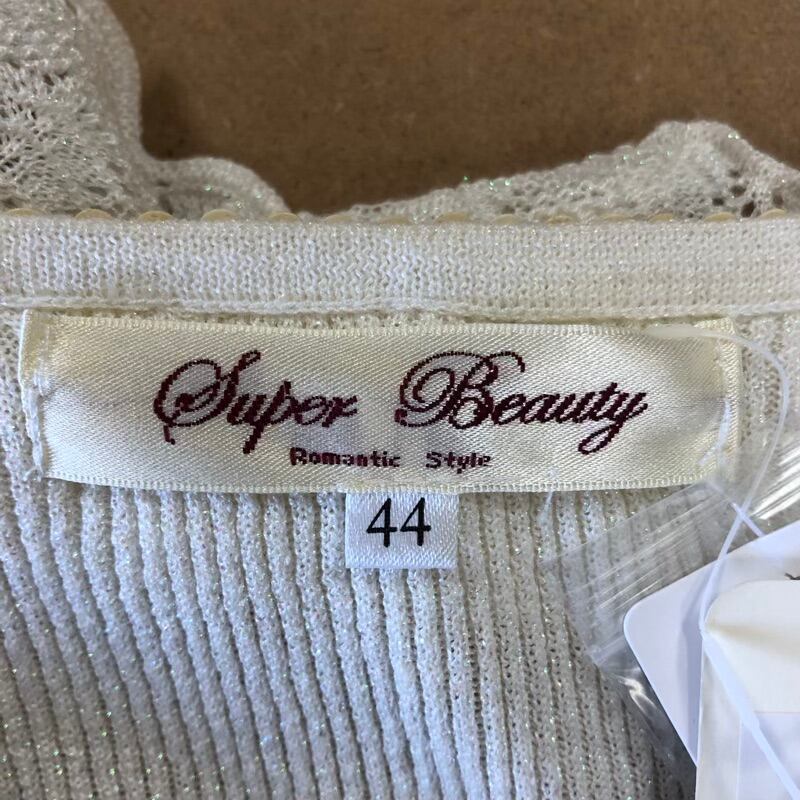 スーパービューティー super beauty カーディガン フリル スパンコール タグ付き ラメ入り生地 レース 白 44サイズ 977120