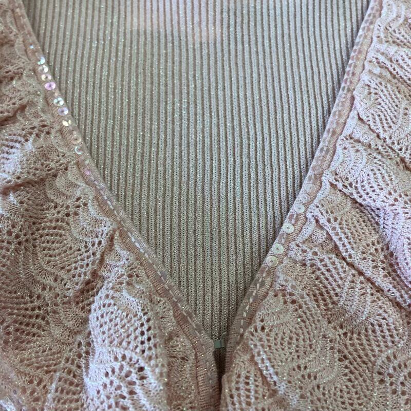 スーパービューティー super beauty カーディガン フリル スパンコール タグ付き ラメ入り生地 レース ピンク 44サイズ 977121