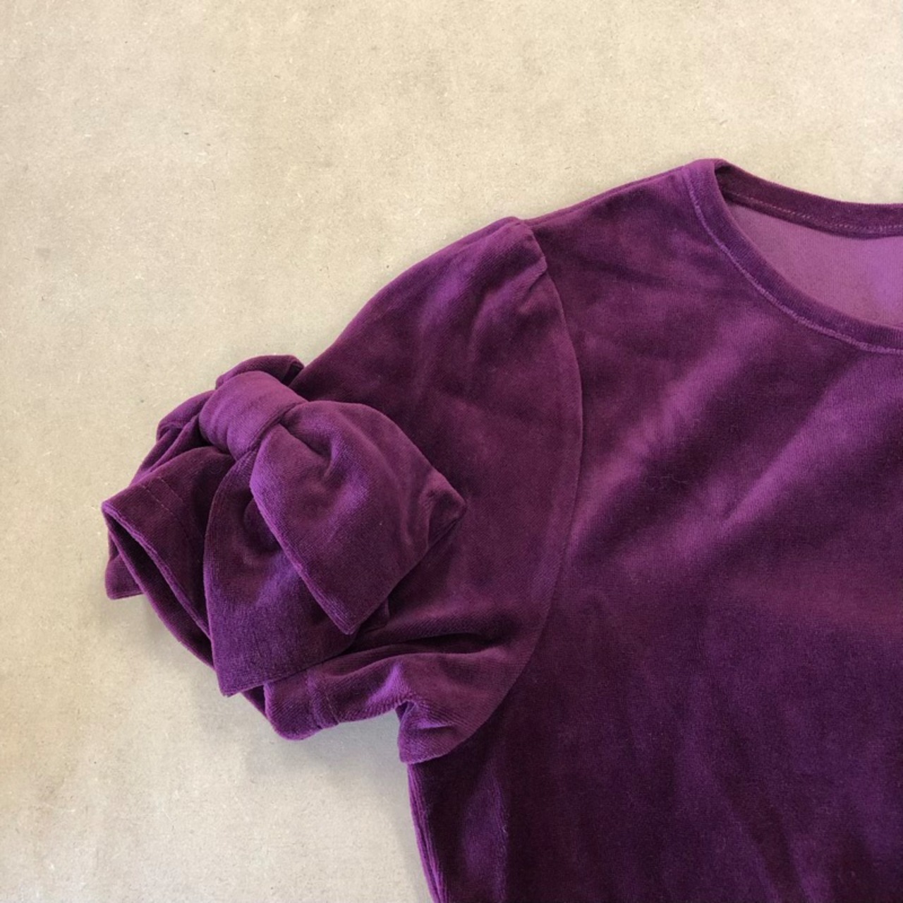 ギャラリービスコンティ GALLERY VISCONTI ワンピース 半袖 ベロア リボン フレア 日本製 タグ付き 赤紫系 2サイズ 978379