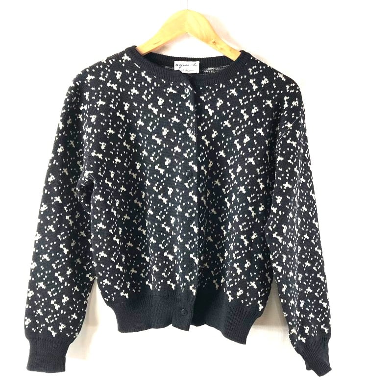 アニエスベー Agnes b カーディガン 柄模様 ハート ブラック系 2サイズ 972164