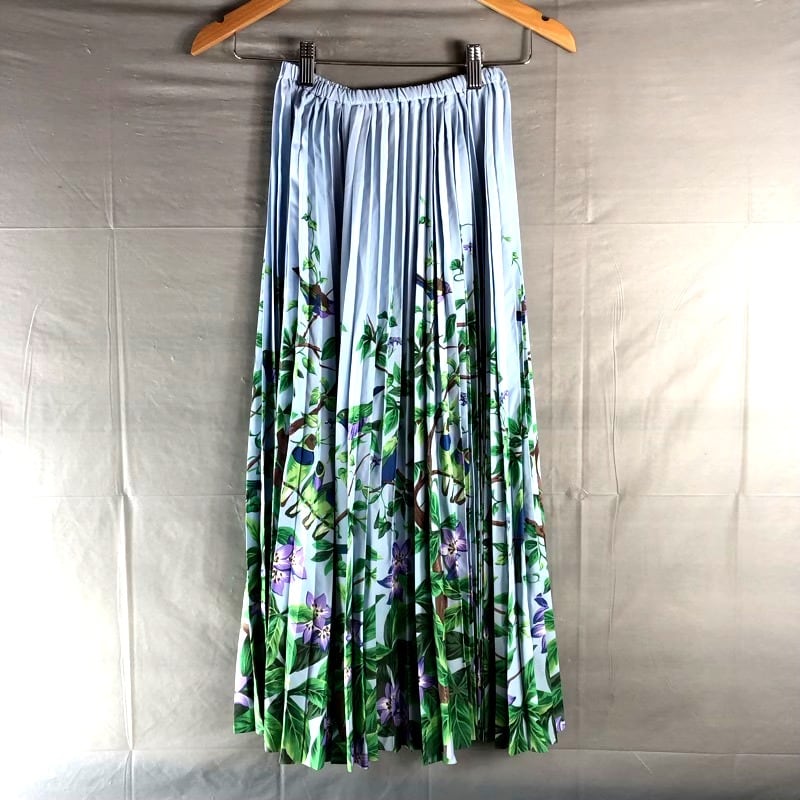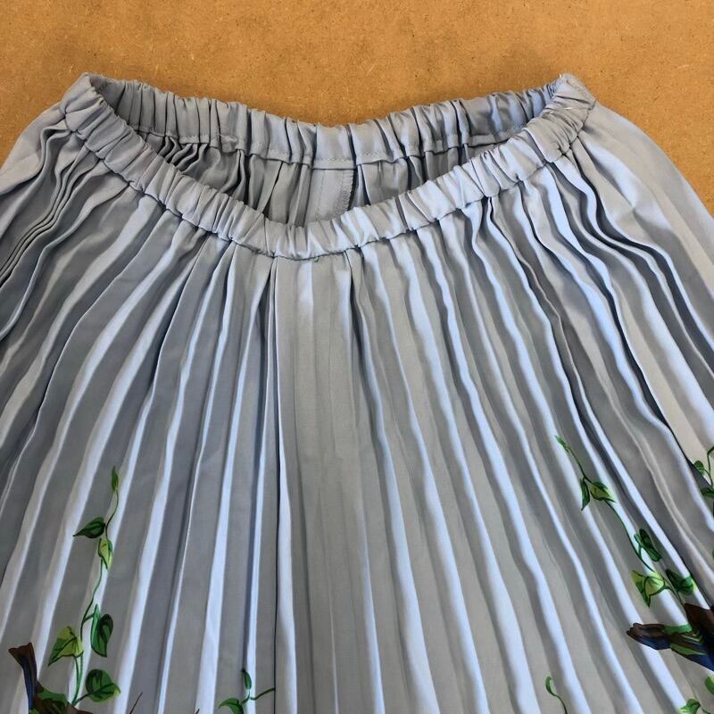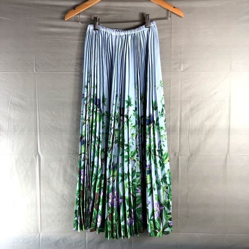 トクコプルミエヴォル TOKUKO 1er VOL レナウン スカート ロング プリーツ バード フラワープリント ライトブルー 水色系 9サイズ 813270