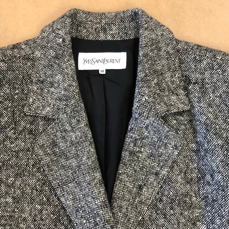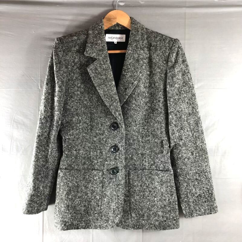 イヴサンローラン Yves Saint Laurent ジャケット テーラード ツイード ロゴボタン グレー系 38サイズ 967027