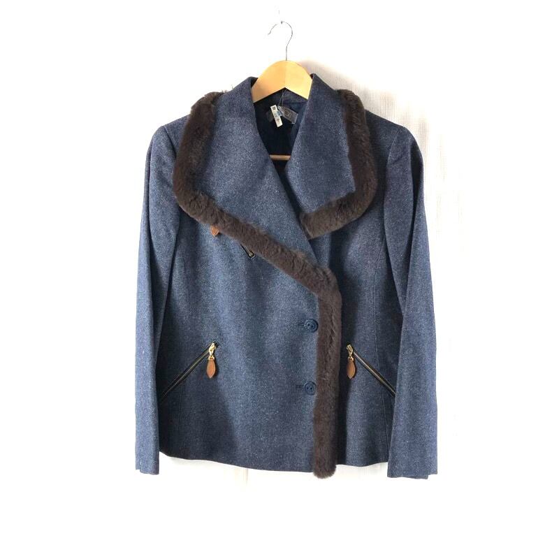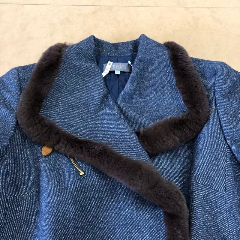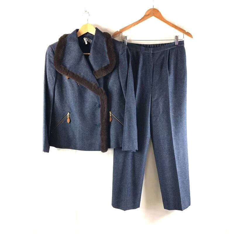 レマロン remalon セットアップ デニム ジャケット パンツ ファー ジップ ボタン 肩パッド 裏地付き ネイビー系 978512