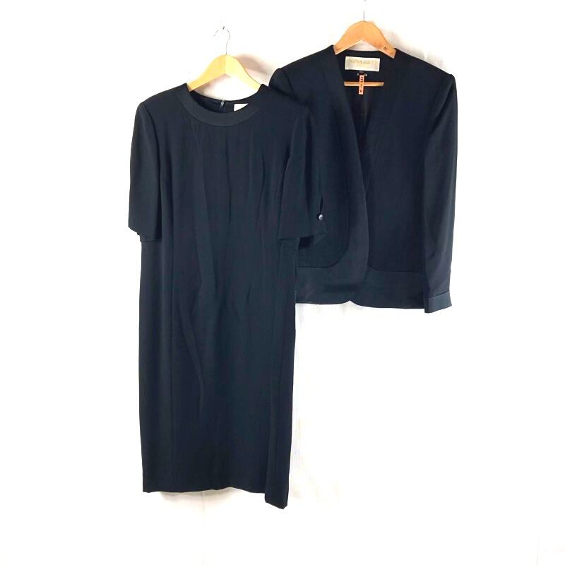 ニナリッチ NINA RICCI スーツ フォーマル ジャケット ワンピース 肩パッド 裏地付き 日本製 黒 11ARサイズ 978523