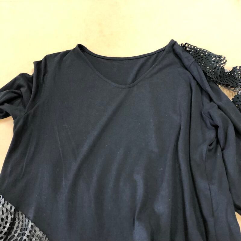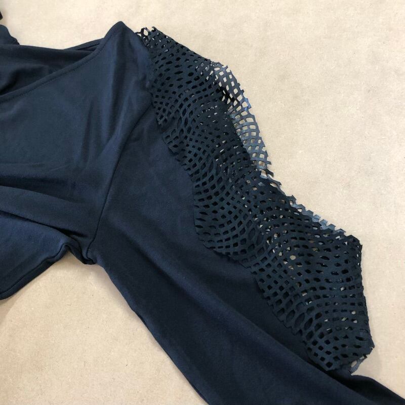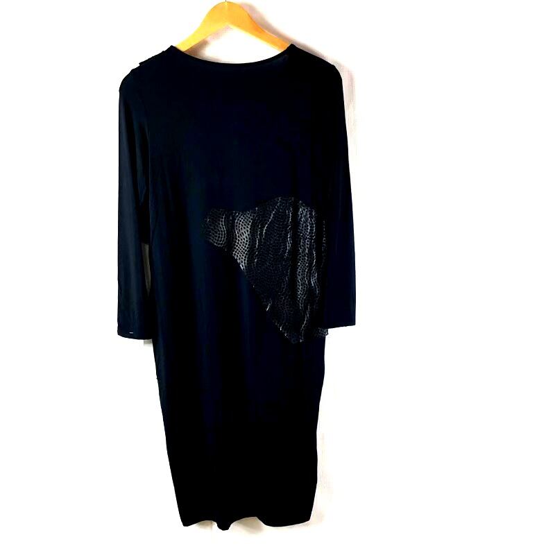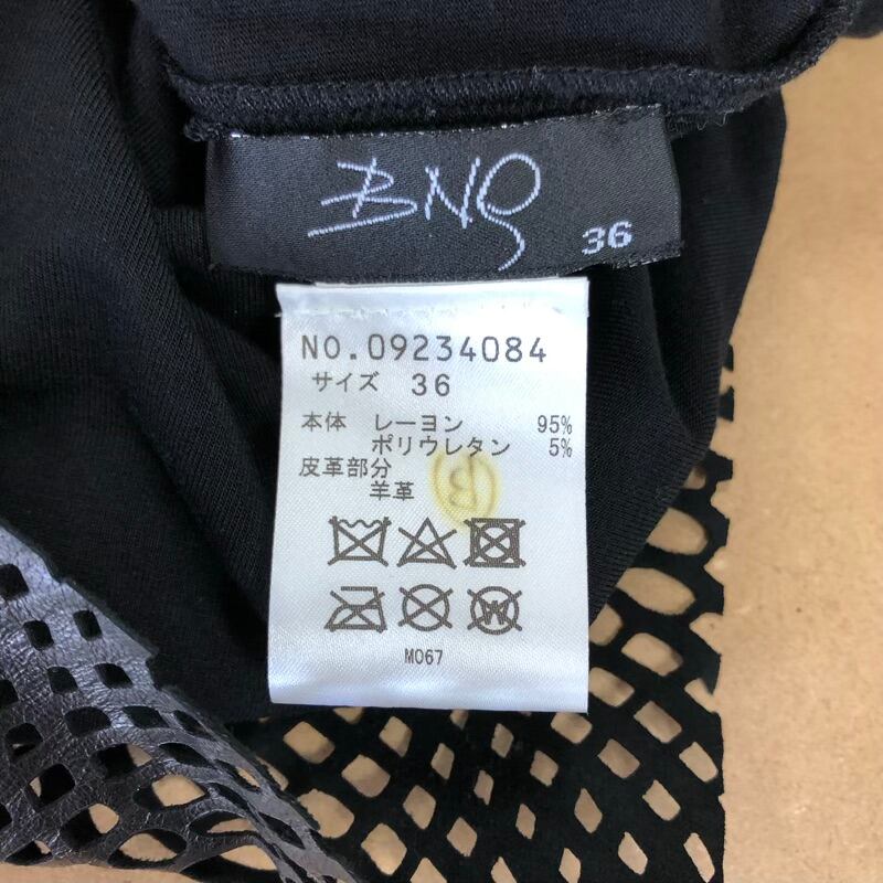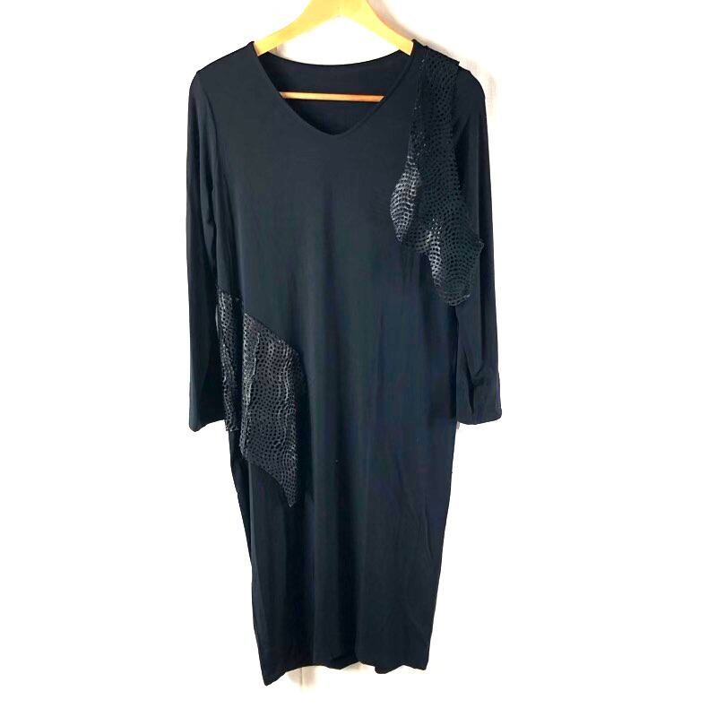 BNQ ワンピース 長袖 革装飾 羊革 ロング 薄手 黒 36サイズ 978890