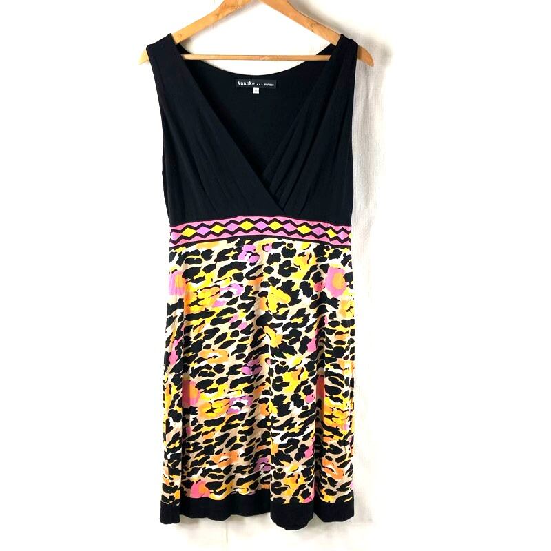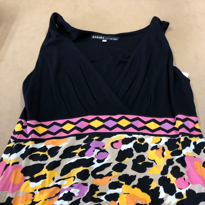 Ananke ...BY FUEGO ワンピース ノースリーブ 柄模様 カラフル 黒 ピンク 紫 オレンジ 44サイズ 978867