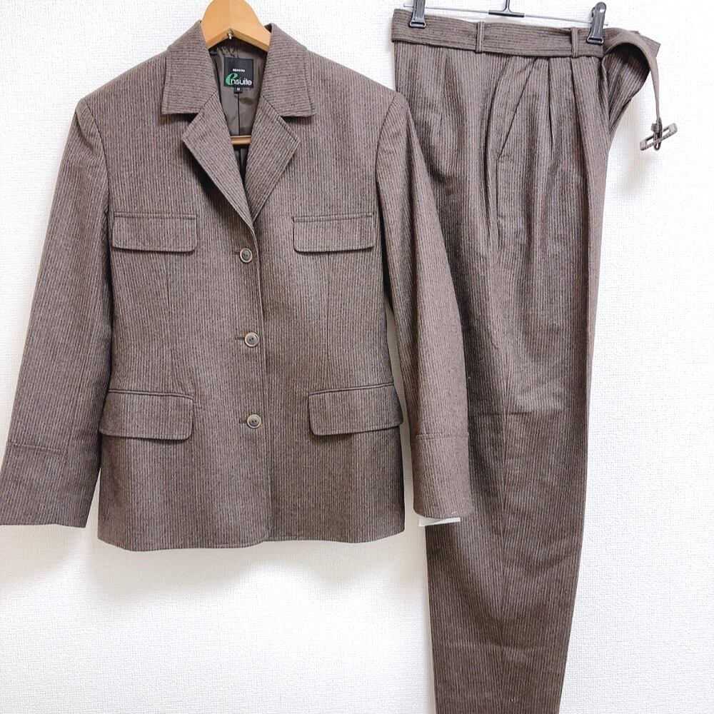 エンスウィート ensuite セットアップ パンツスーツ ベルト付き ストライプ ブラウン 11サイズ 973111
