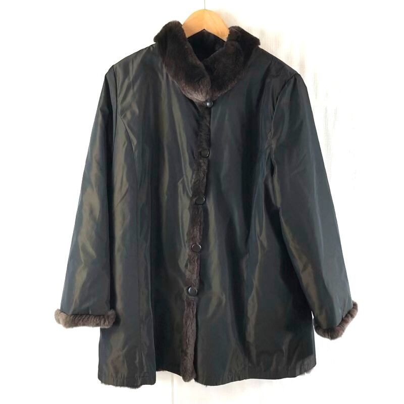 レリアン leilian コート レッキスラビット 毛皮 ボタン サイドポケット ダークブラウン 13+サイズ 962354