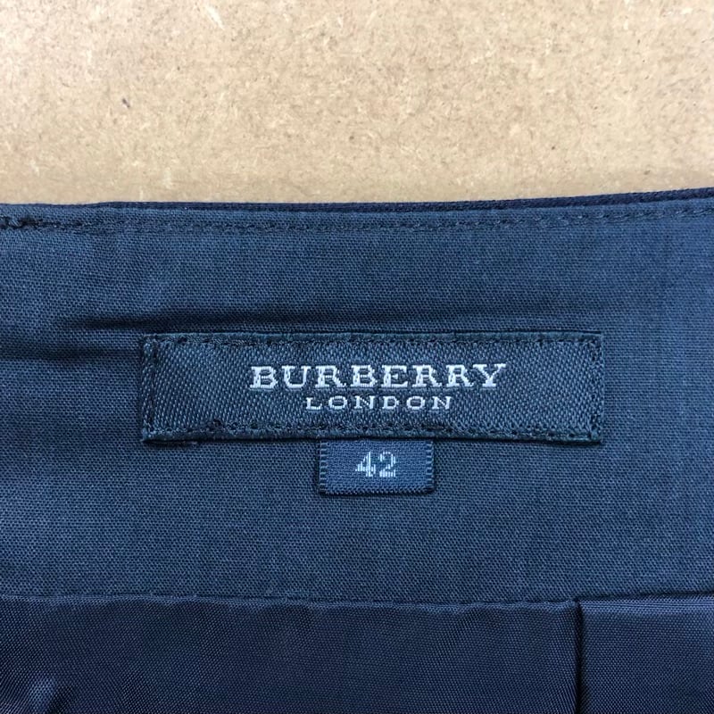 バーバリーロンドン BURBERRY LONDON スカート フレア 裏地付き ボタン 日本製 ネイビー 42サイズ 978289