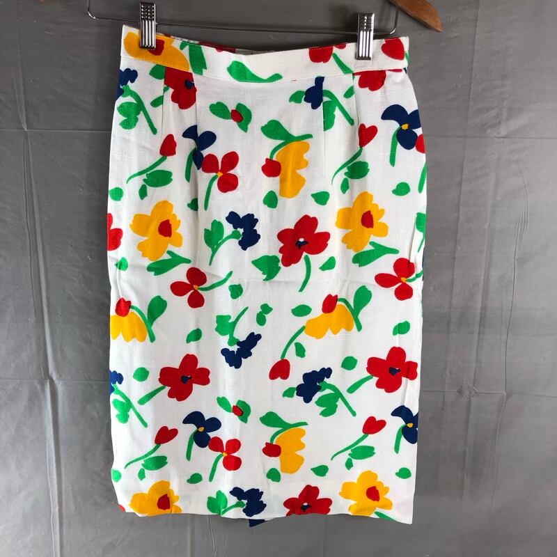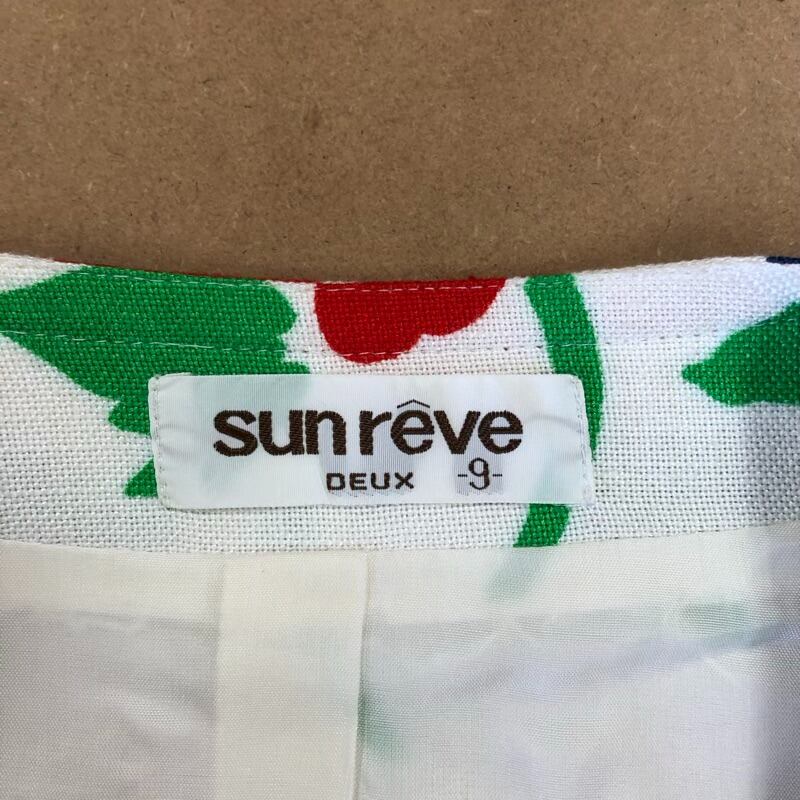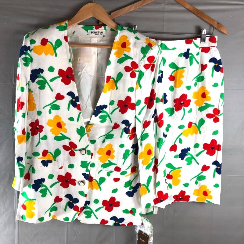 SUN REVE セットアップ スーツ 花柄 ジャケット スカート タグ付き 肩パット 裏地付き イタリア 白 赤 黄 緑 青 9サイズ 980702