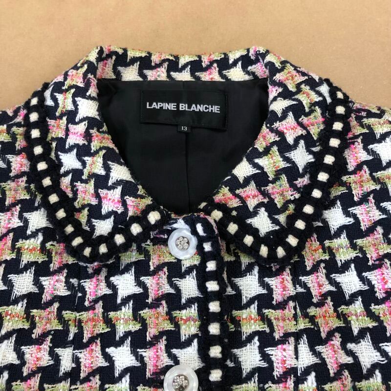 ラピーヌブランシュ LAPINE BLANCHE ジャケット フェイクポケット 装飾ボタン 裏地付き 黒 白 ピンク 13サイズ 980477