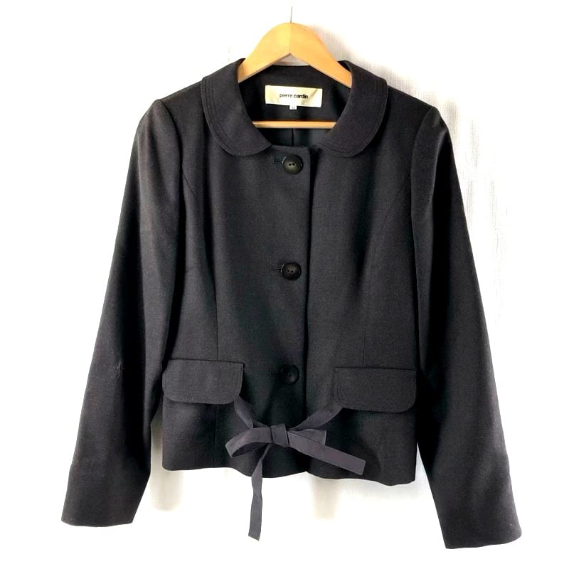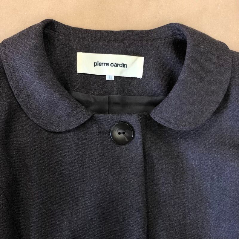 ピエールカルダン pierre cardin ジャケット 丸襟 ウエストリボン付き ウール混 ブラウン 11サイズ 973141