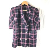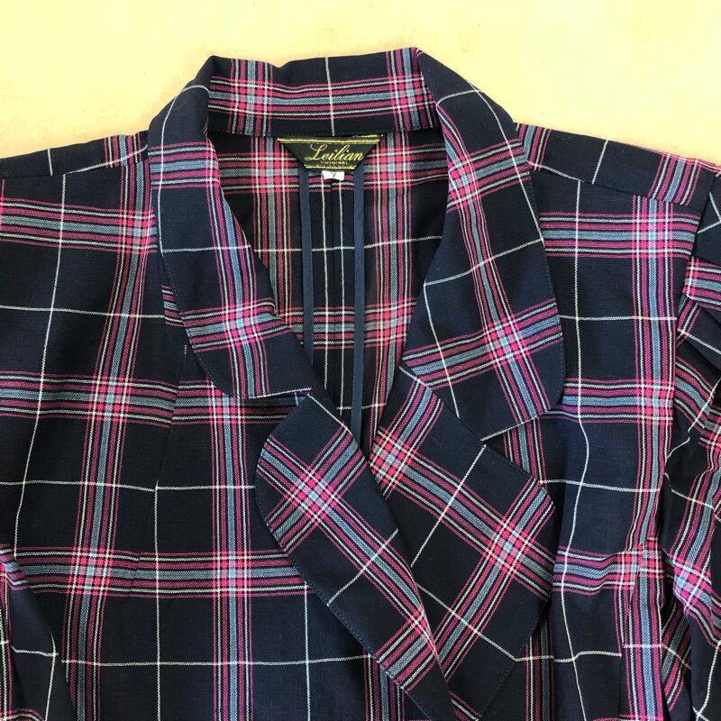 レリアン leilian ジャケット テーラード パフスリーブ 半袖 チェック 毛100% シェルボタン ネイビー系 7サイズ 973138