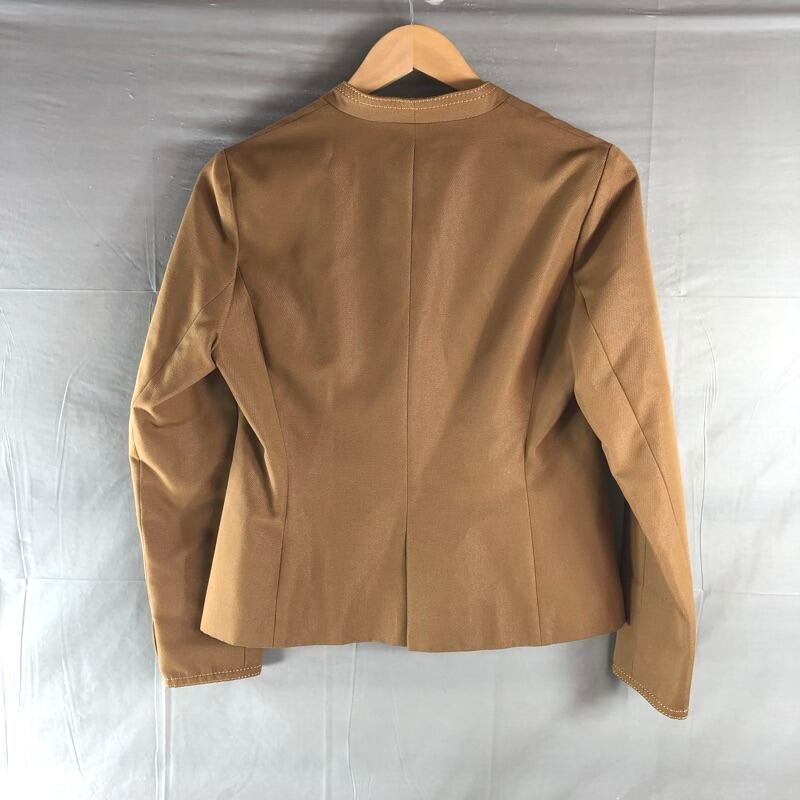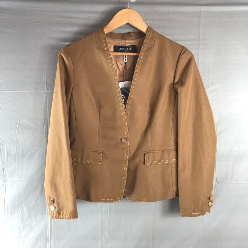 ミッシェルクラン MICHEL KLEIN ジャケット ノーカラー ステッチデザイン ゴールドボタン ポケット タグ付き ブラウン系 40サイズ 980690
