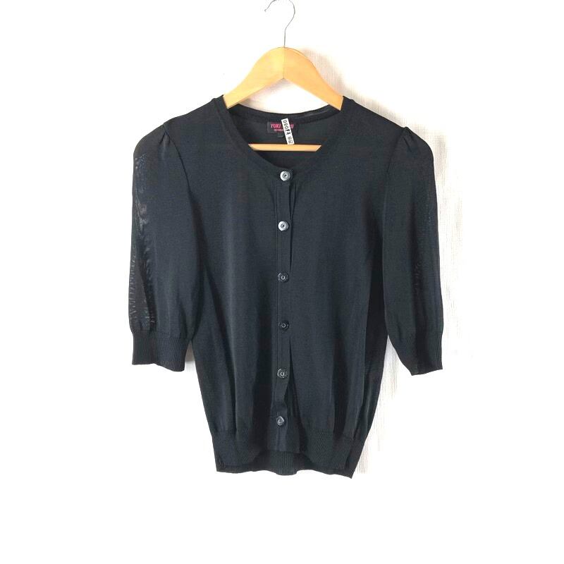 ユキトリイインターナショナル YUKI TORII INTERNATIONAL カーディガン 薄手 七分袖 ボタン リブ 日本製 黒 40サイズ 980689