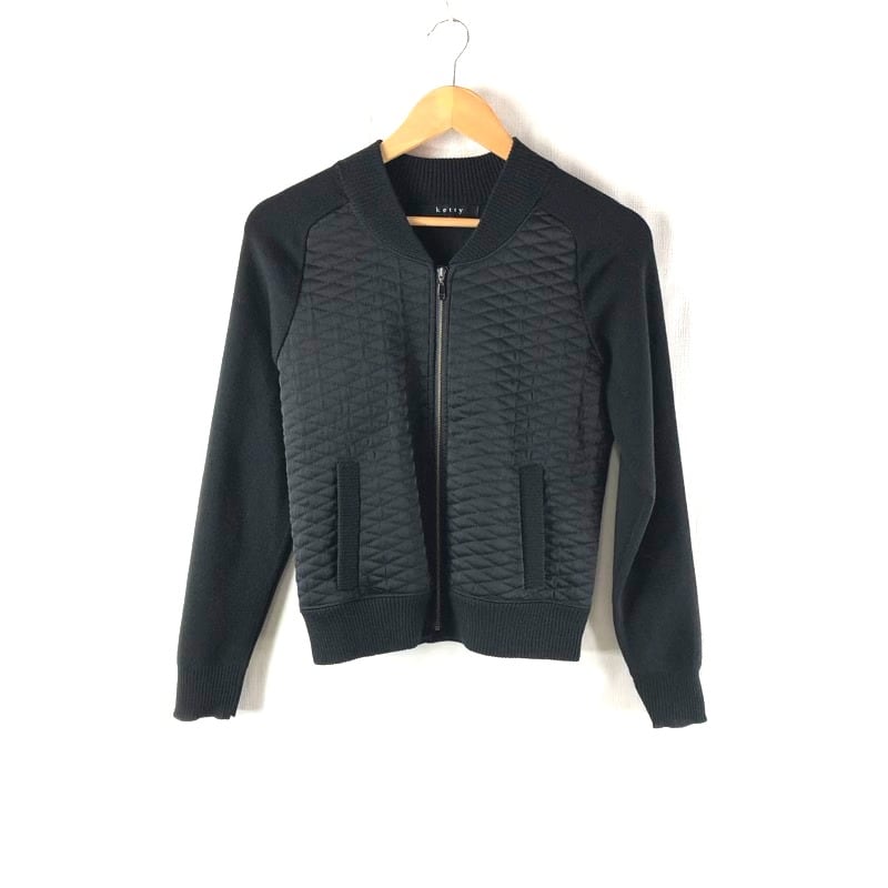 ケティ Ketty セットアップ ジャケット スカート キルティング ニット ジップ リブ 裏地付き 黒 2サイズ 962264