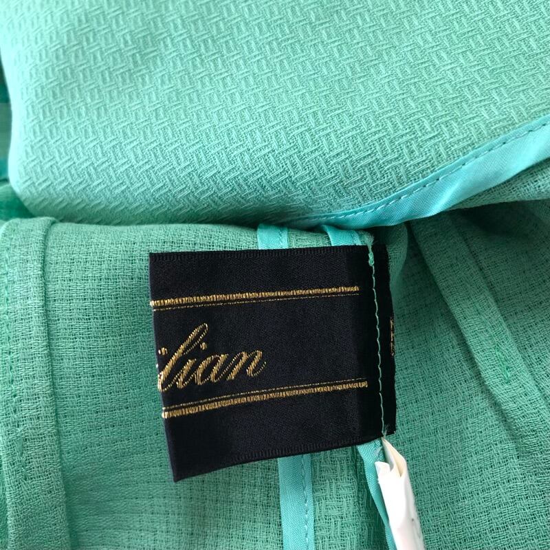 レリアン leilian ジャケット ノーカラー 半袖 肩パッド付き ゴールドボタン グリーン 7サイズ 973137