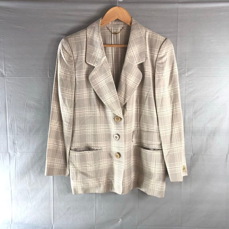 レリアン leilian ジャケット チェック柄 チャーム ボタン 肩パッド 日本製 ベージュ系 7サイズ 973132