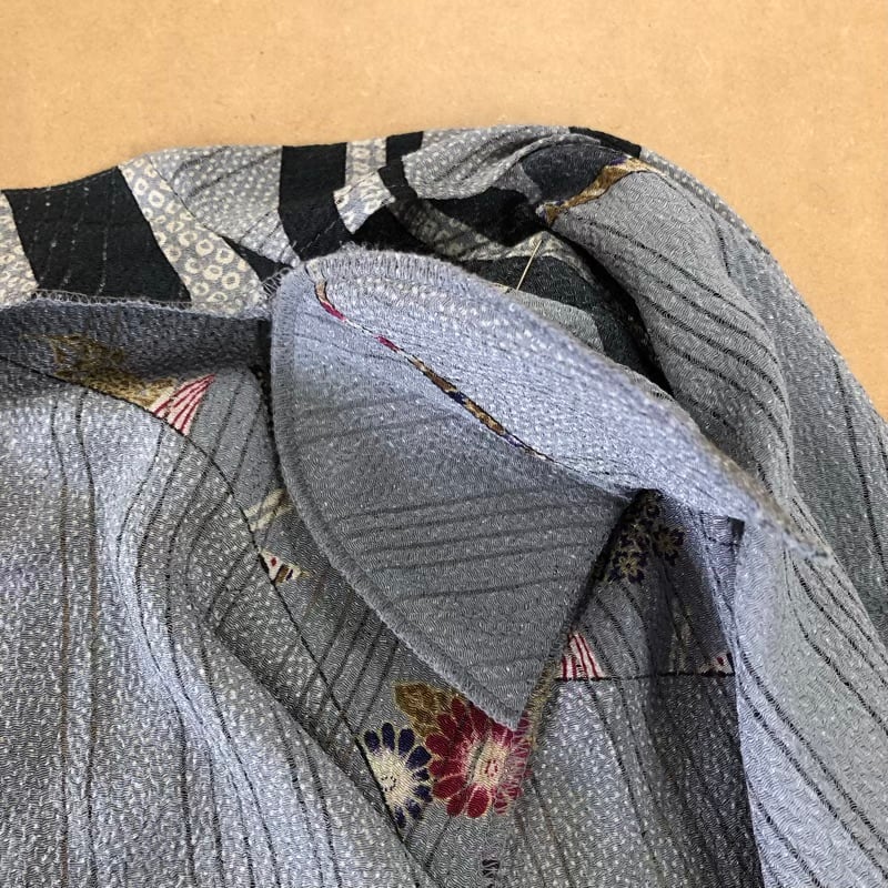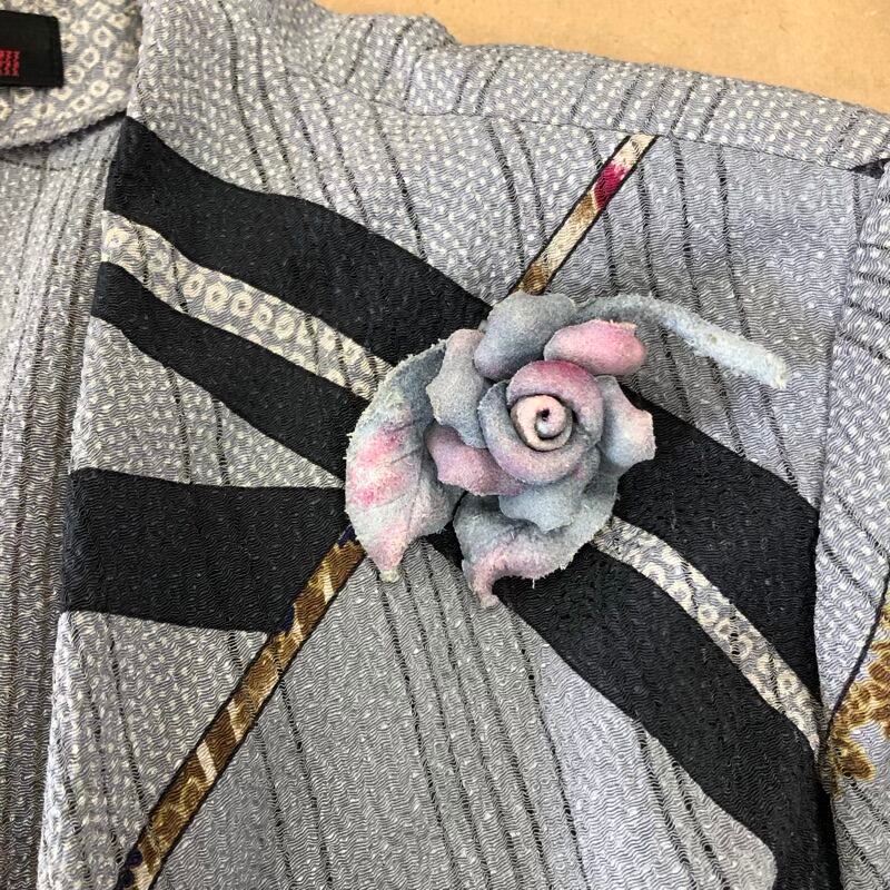 シセンドウ 詩仙堂 カーディガン オープンフロント ちりめん 柄模様 コサージュ付き 肩パッド付き グレー系 975145