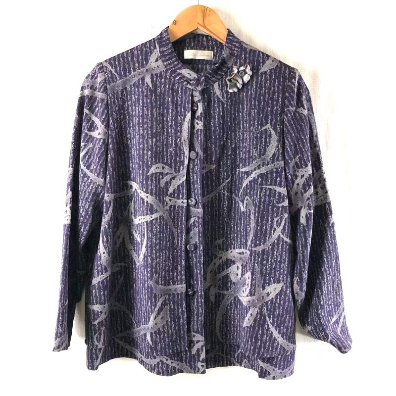 シセンドウ 詩仙堂 HITOSHI TAMURA ブラウス ちりめん レイヤード風 総柄 コサージュ付き パープル系 975033
