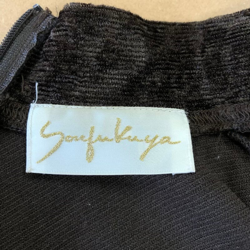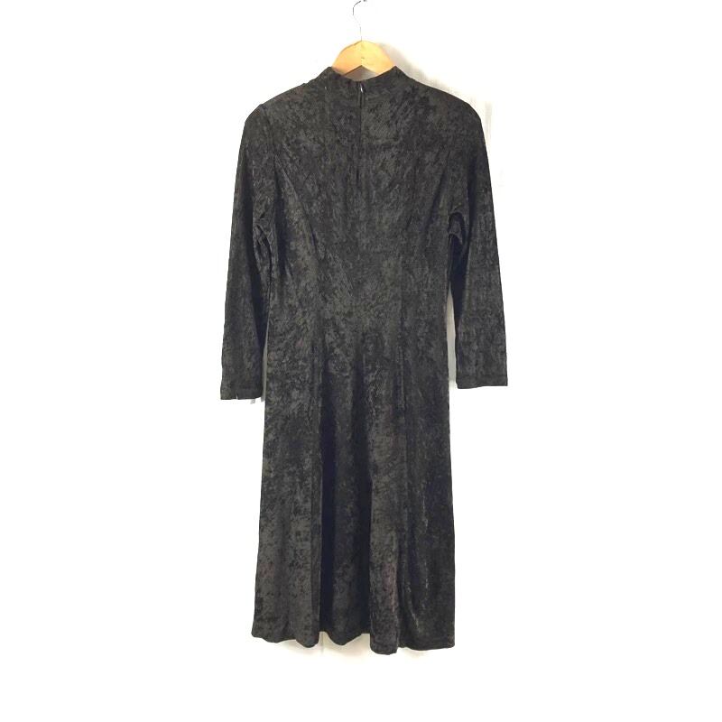 ヨウフクヤ 洋服屋 ワンピース ロング 長袖 ハイネック コーデュロイ 刺繍 肩パッド 日本製 ブラウン 935886