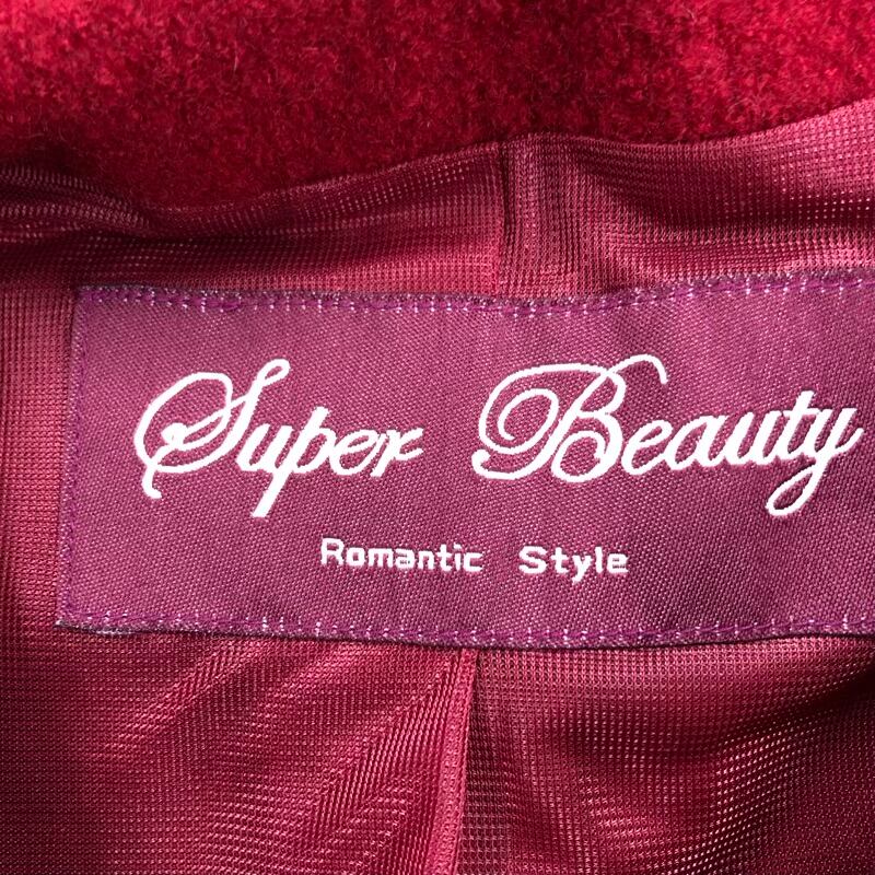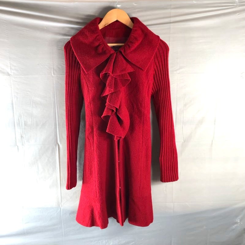 スーパービューティー super beauty コート ロング フリル 腰ひも 袖ニット生地 ロング 裏地付き 赤 40サイズ 736987