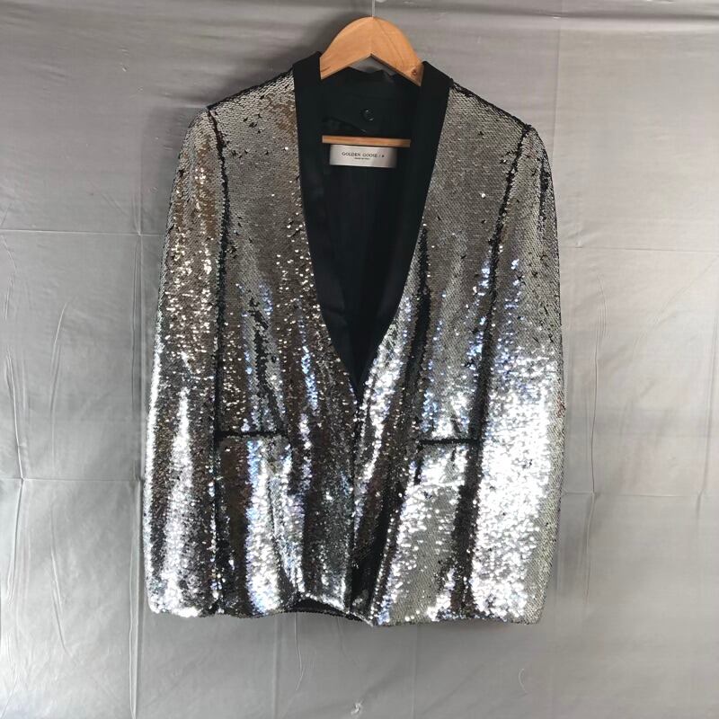 ゴールデングース GOLDEN GOOSE ジャケット 総スパンコール フェイクポケット イタリア製 袋付き タグ付き シルバー系 38サイズ 929404