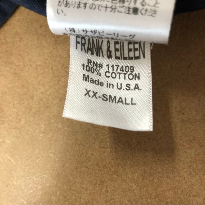 フランクアンドアイリーン Frank&Eileen シャツ 長袖 綿100% 胸ポケット ボタン 紺 XX-SMALLサイズ 973333