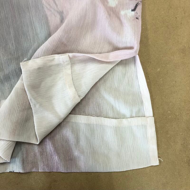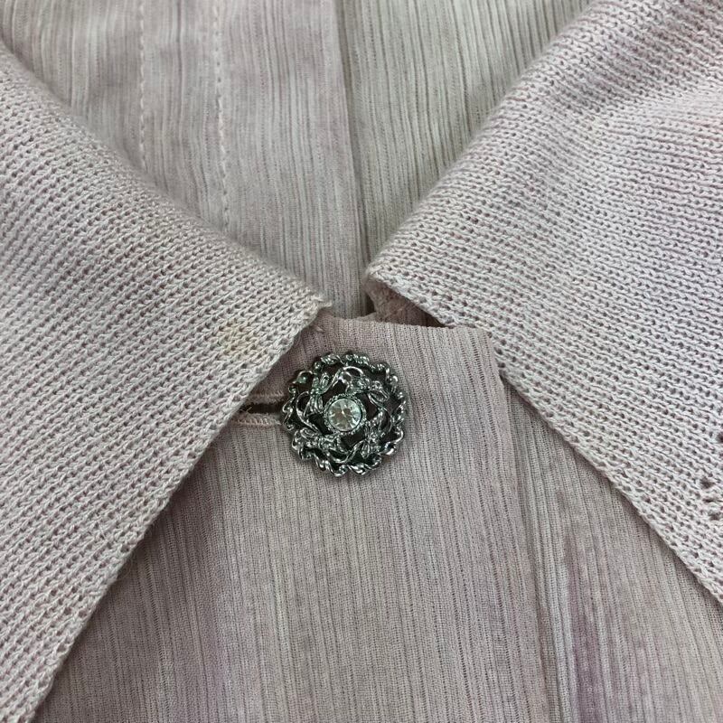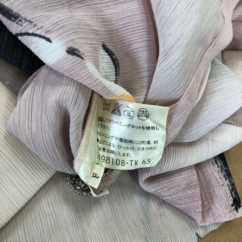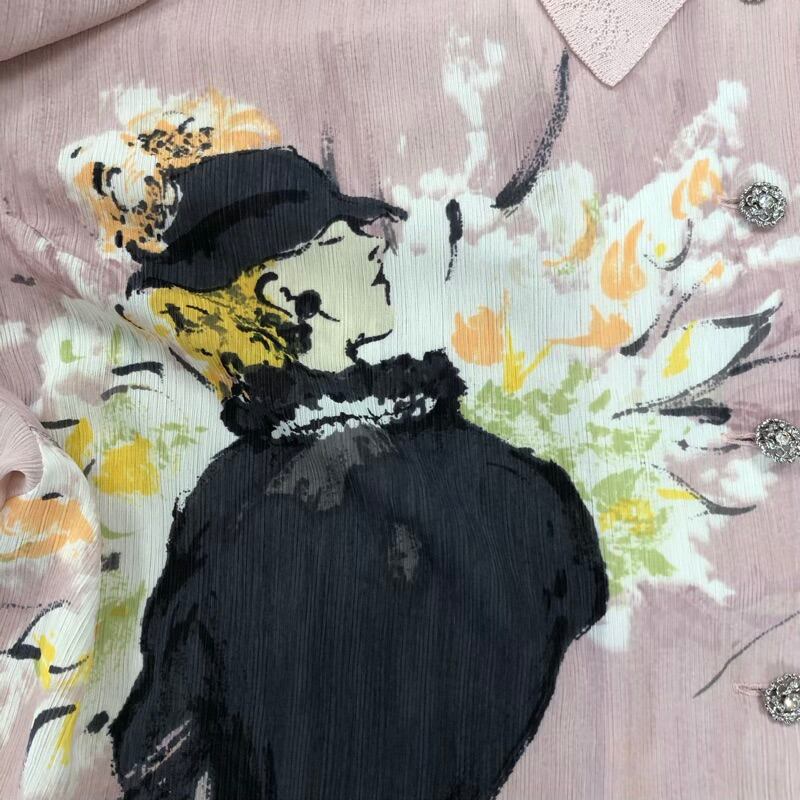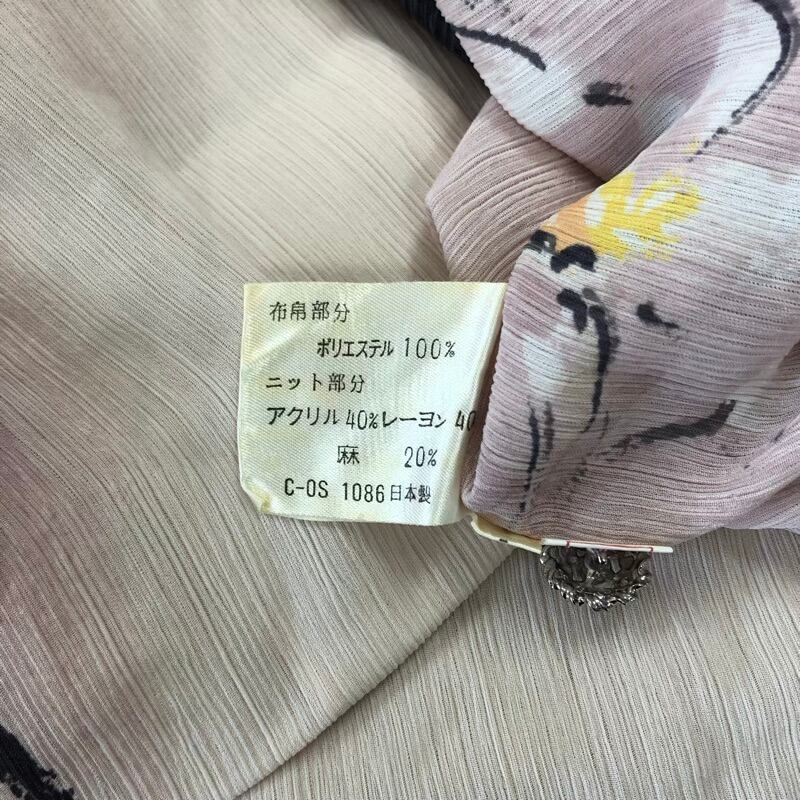 シャミー Chamois ブラウス 柄プリント 麻混 ビジューボタン付き 異素材生地 ピンク系 くすみピンク Fサイズ 973193