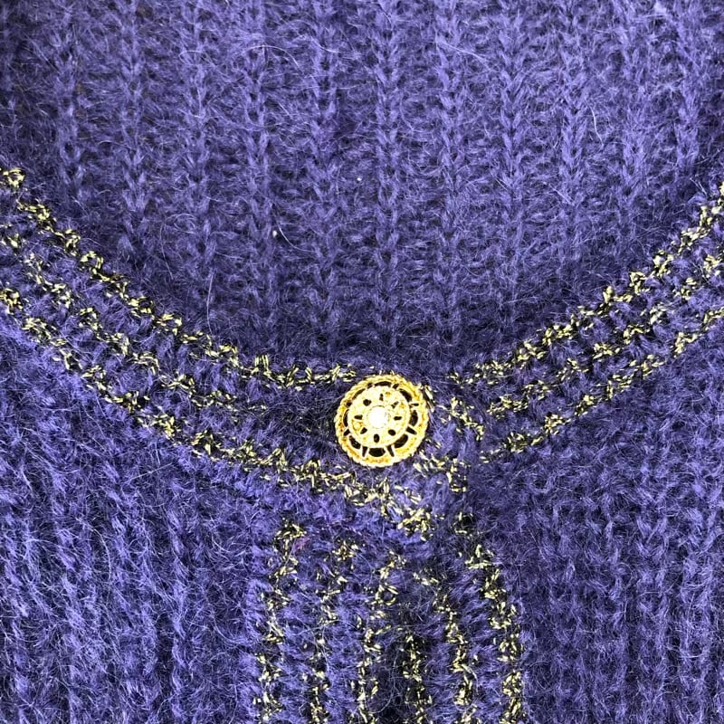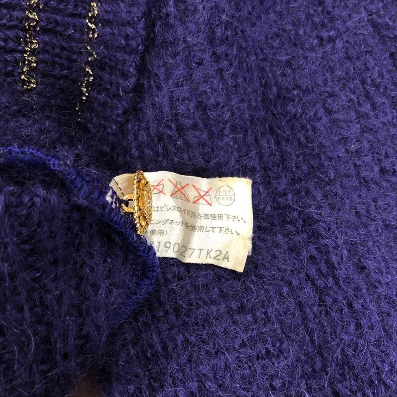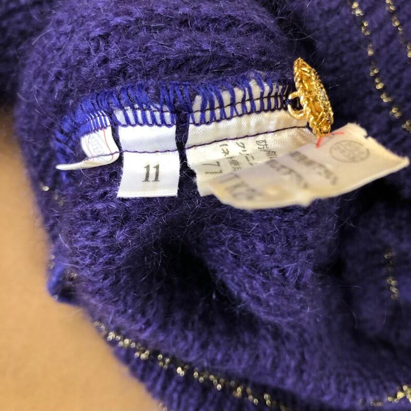 シャミー Chamois カーディガン 毛混 ゴールドライン ビジューボタン付き パープル 11サイズ 973126