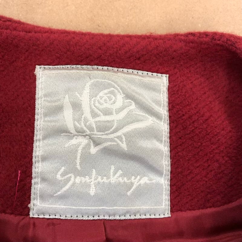 ヨウフクヤ 洋服屋 Youfukuya シズカコムロ コート フリル裾 ボタン ポケット 肩パッド 日本製 赤 935875