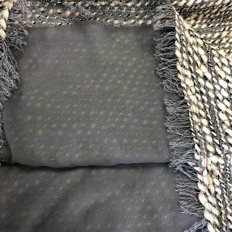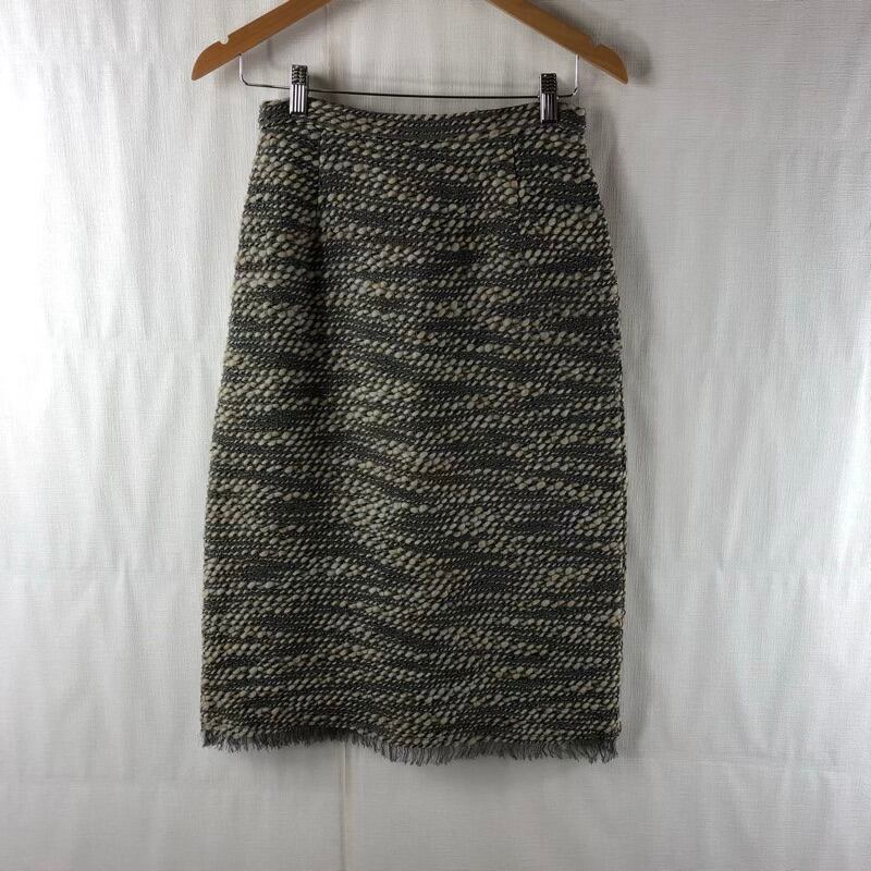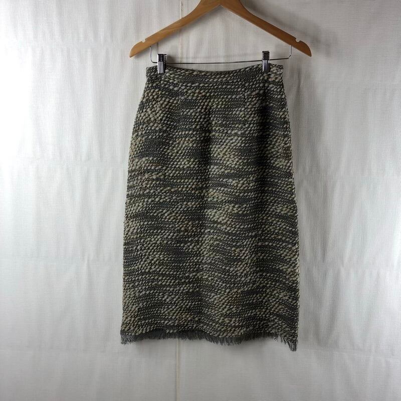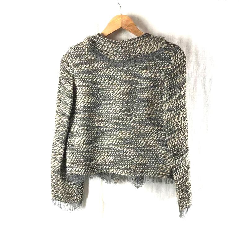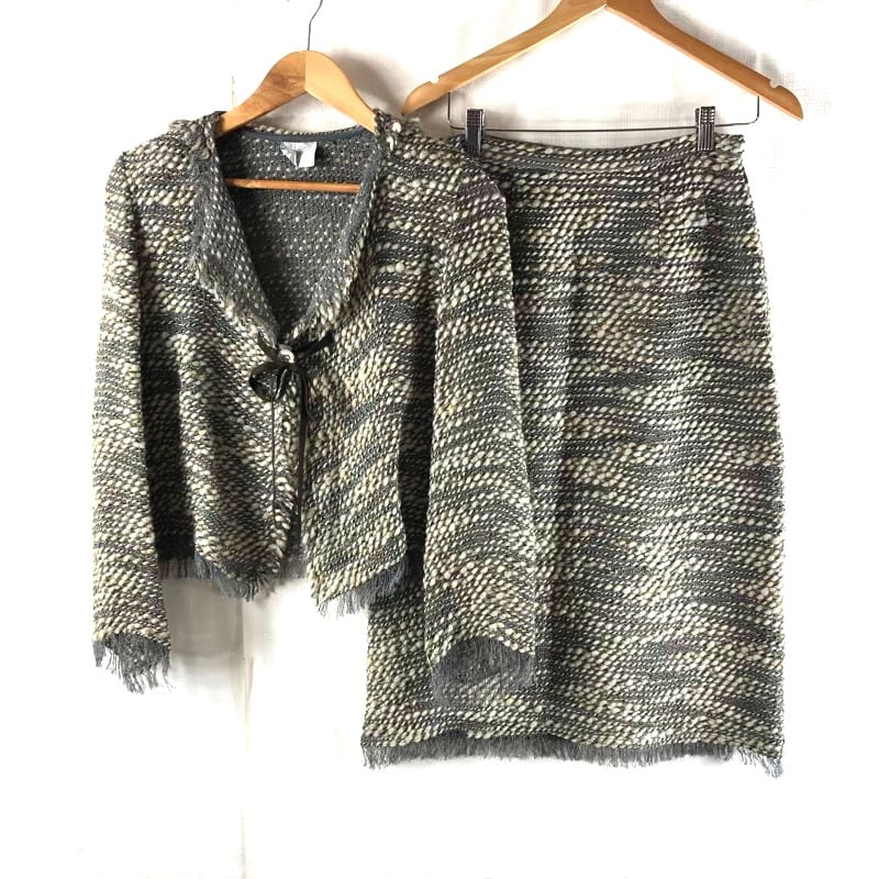 ヨウフクヤ 洋服屋 セットアップ ジャケット スカート 編みデザイン フリンジ リボン紐 裏地付き 肩パッド 日本製 グレー系 935877