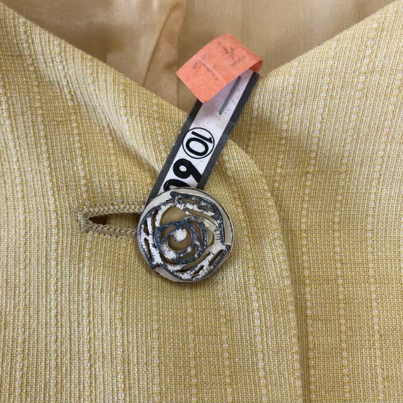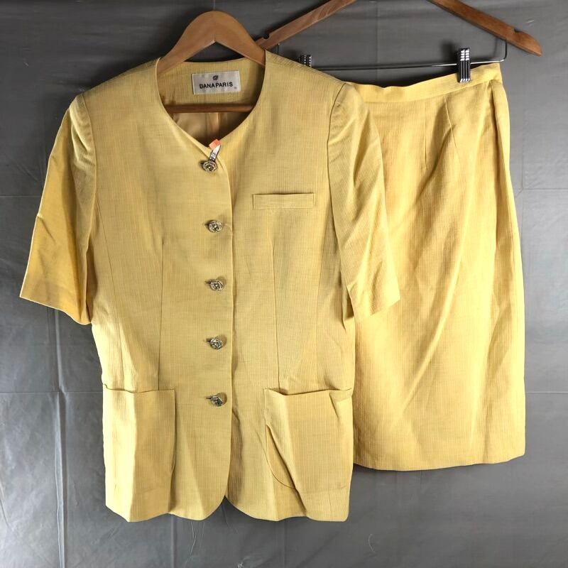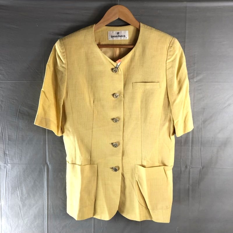 ダナパリ DANAPARIS スーツ スカートスーツ 半袖 アンティーク調ボタン リネン混 イエロー 11サイズ 977843