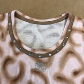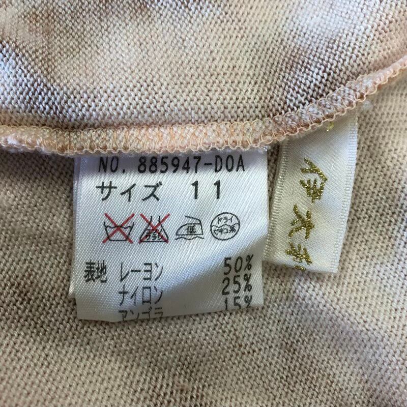 イタリヤ 伊太利屋 カットソー 長袖 ニット 柄模様 ビジュー ラインストーン ベージュ くすみピンク系 11サイズ 978827