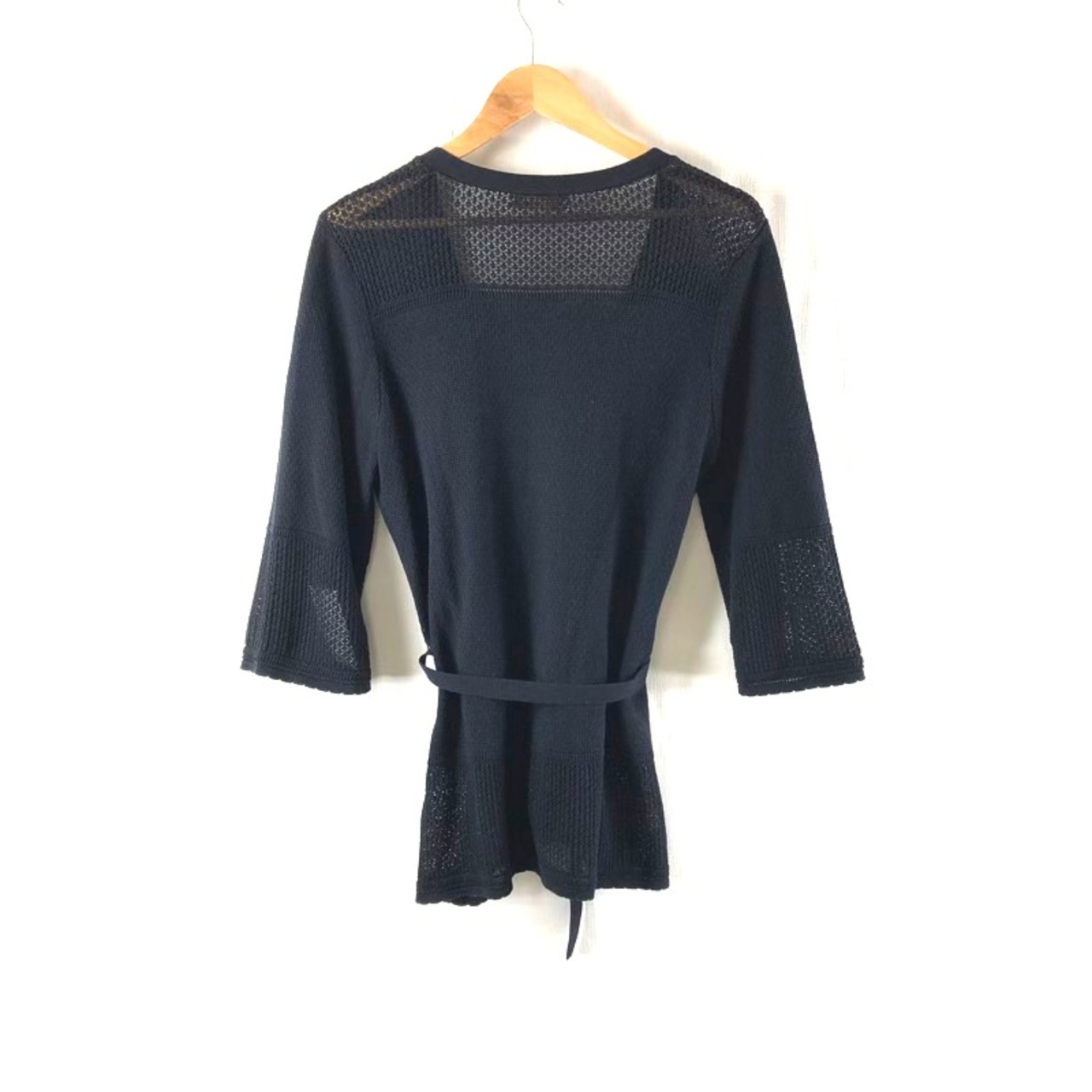 ローラアシュレイ Laura Ashley カーディガン 編みデザイン Vネック リボン紐 ネイビー 濃紺系 978828