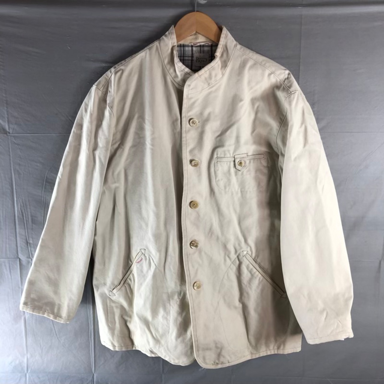 パパス PAPAS ジャケット サイドポケット 綿100% 裏地付き 日本製 ベージュ Mサイズ 978948