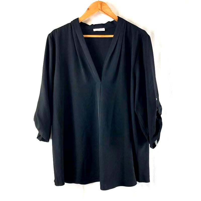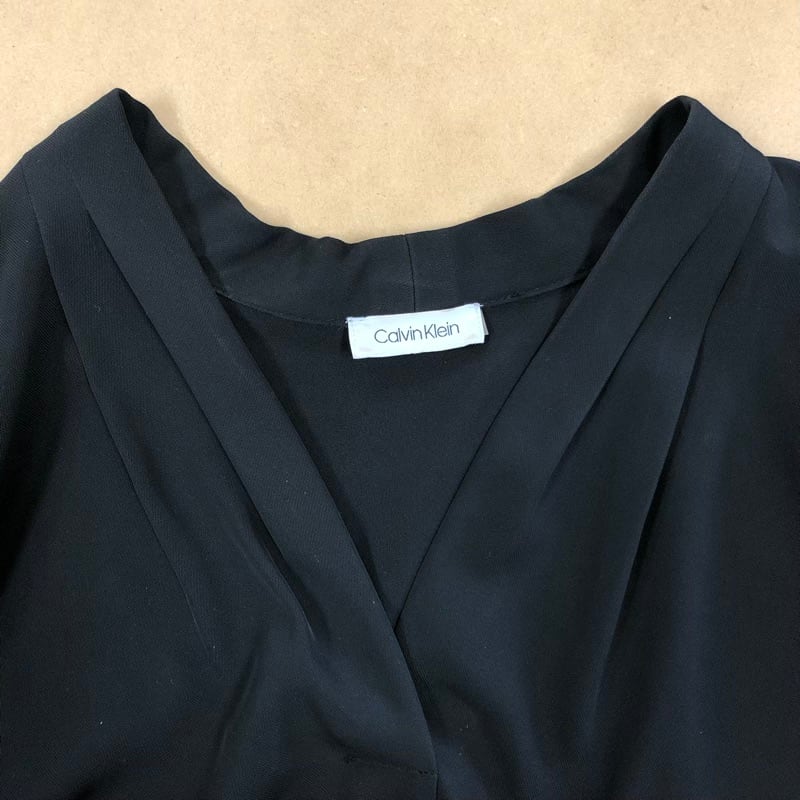 カルバンクライン Calvin Klein ブラウス スキッパー ロールアップスリーブ トロミ素材 ブラック 978821