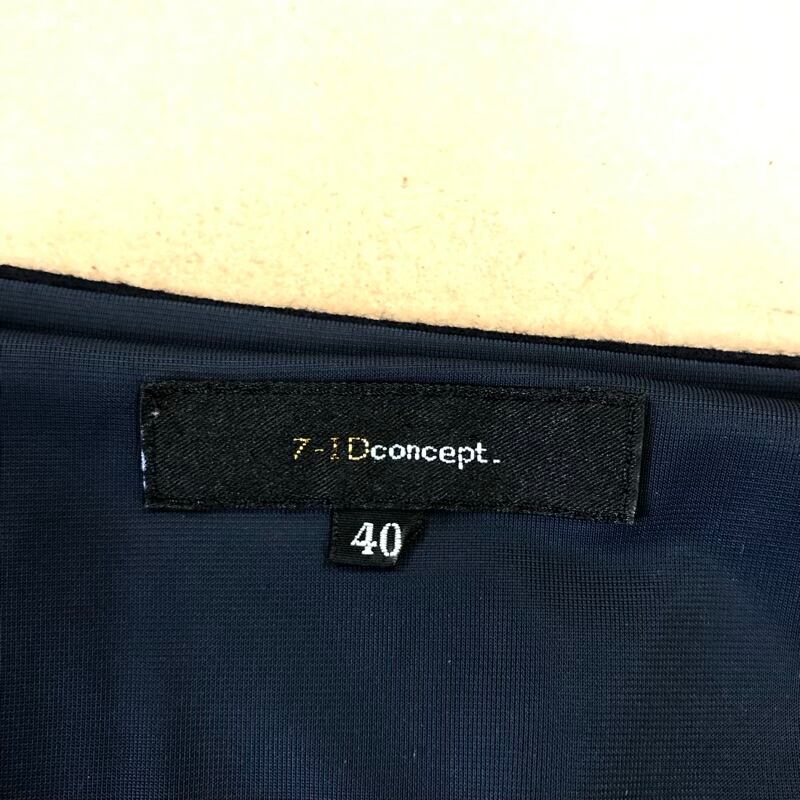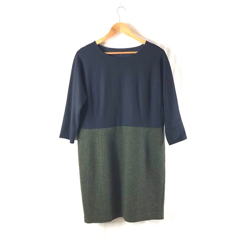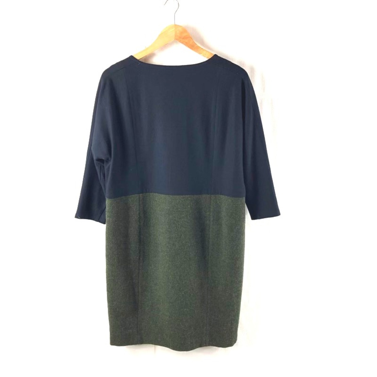セブンアイディコンセプト 7-Idconcept. ワンピース 長袖 異素材デザイン ウール100% 裏地付き 日本製 紺 カーキ系 40サイズ 978945