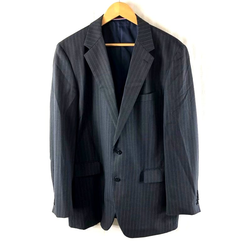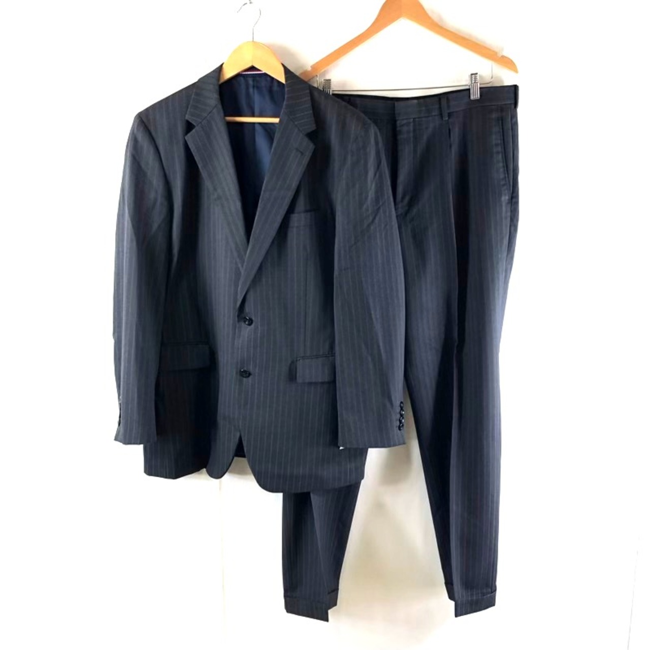 フィガロパリ FIGARO Paris セットアップ スーツ ジャケット パンツ ストライプ シングルボタン サイドポケット ダークグレー 102AB8サイズ 974429
