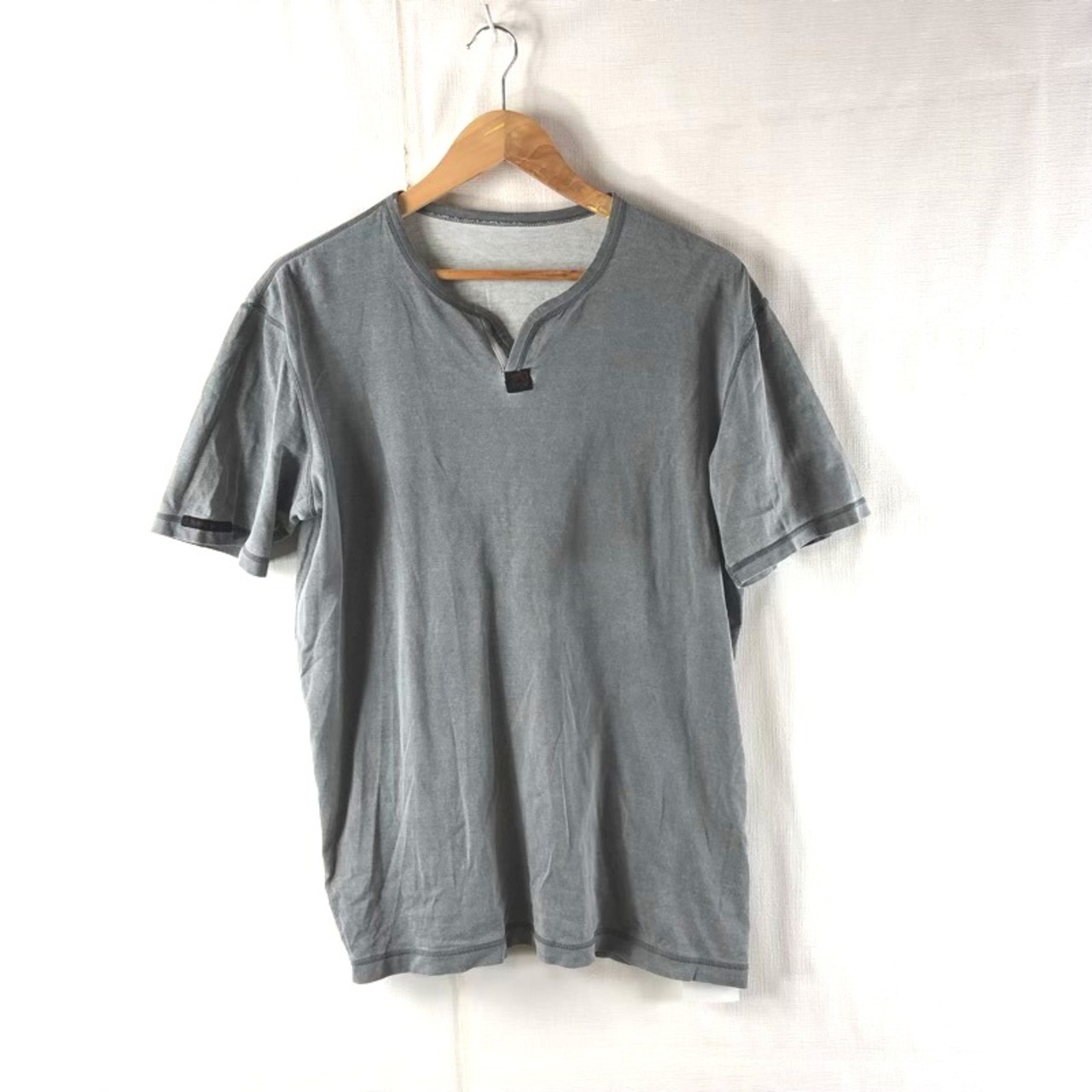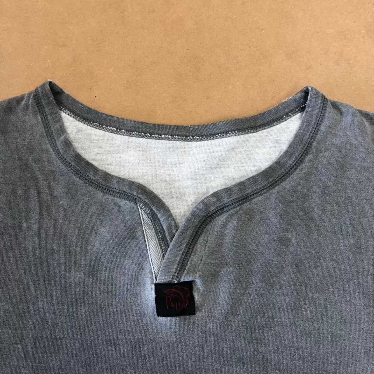 パパス PAPAS Tシャツ 半袖 デザインネック ロゴ入り 綿100% 日本製 グレー系 Mサイズ 978951