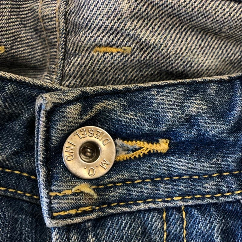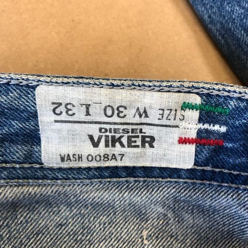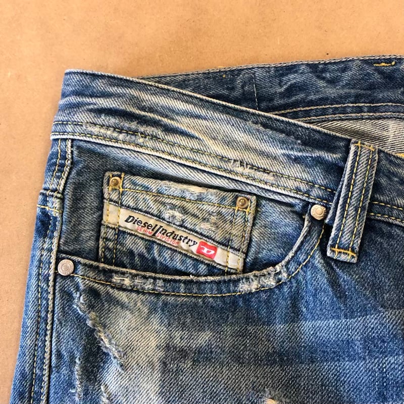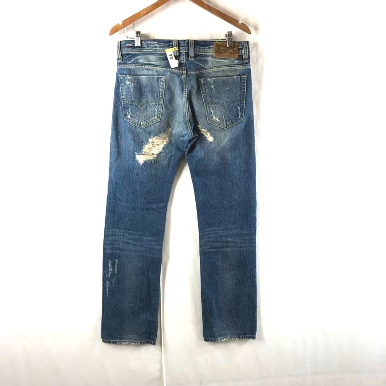 ディーゼル DIESEL パンツ デニム ジーンズ クラッシュ加工 ダメージ 綿100% 牛革ラベル イタリア製 ブルー系 30サイズ 968211
